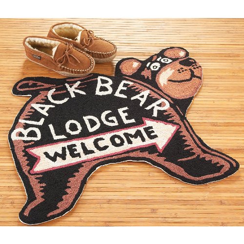 Your new northwoods buddy! Black Bear Rug, BIG BUCKS OFF! A cute little "welcome" for your home or cabin. A bear-shaped Rug, loop-hooked, approx. 32" wide, 26" high. Quality made of wear and fade-resistant 50/50 polyester / acrylic. Non-skid backing. Can be vacuumed, hand washed and line dried. Imported. Get this overstock bargain now! Black Bear Rug.../ Black Bear Rug / Bear Rugs